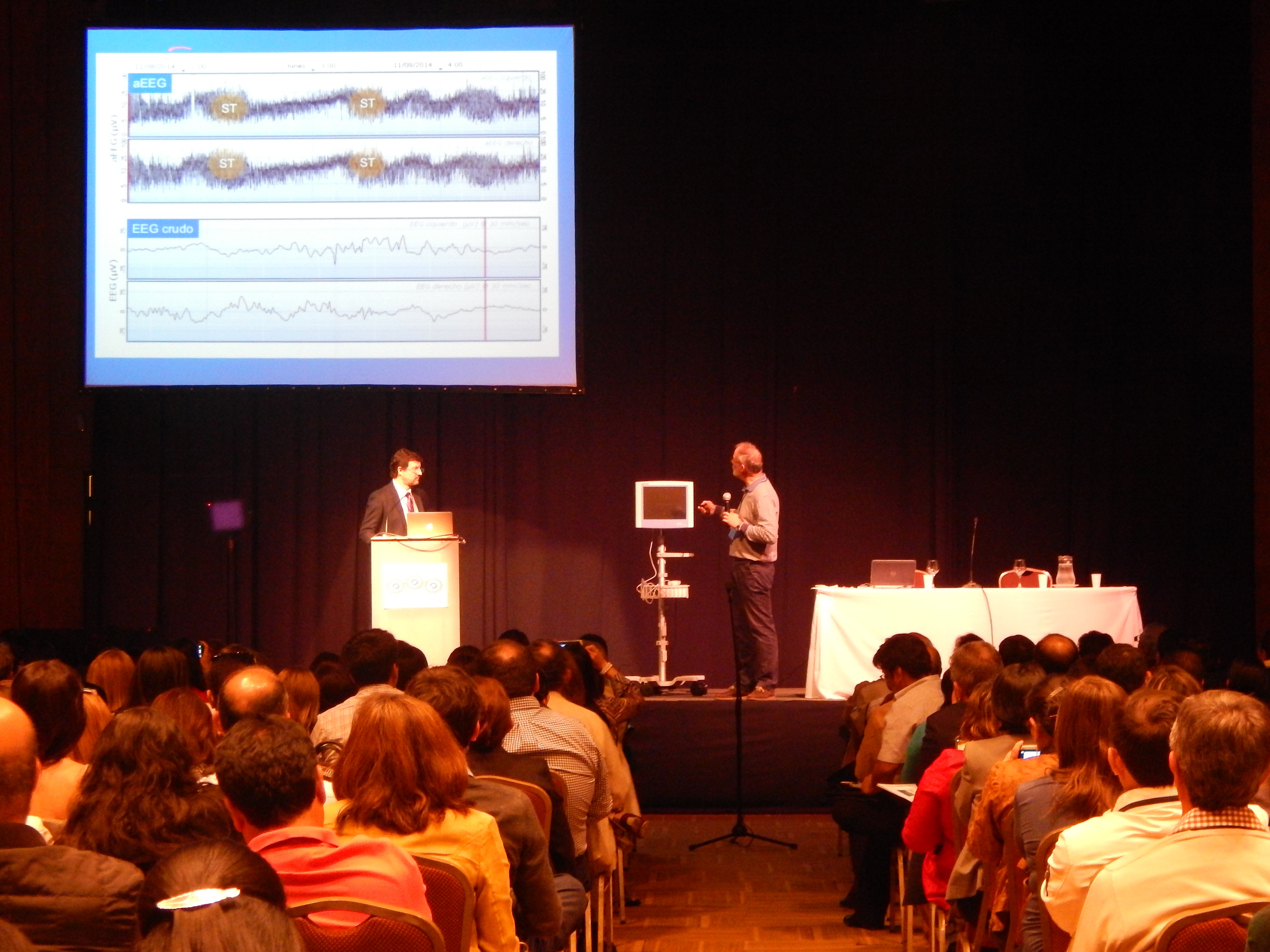 El pasado 24 de Agosto (2016), en Asunción (Paraguay), Dr. Alfredo García-Alix fue invitado por SIBEN (www.siben.net) a su XIII Congreso Anual, para coordinar el Taller titulado “El electroencefalograma integrado por amplitud (aEEG) y aspectos clínicos en el recién nacido con encefalopatía neonatal aguda”. El Dr. García-Alix, presidente de NeNe, el Dr. Juan Fasce, colaborador de nuestra Fundación, así como el Dr. Cesar Sánchez Acosta (México) y la Enfermera Maite Montes (HULP de Madrid) participaron en un taller sobre el papel del examen neurológico y el electroencefalograma integrado por amplitud en el recién nacido con encefalopatía neonatal aguda. Ambas herramientas se consideran hoy imprescindibles en la evaluación del estado neurológico del recién nacido con esta patología aguda. El taller contó con la asistencia de más de 400 profesionales del ámbito de la medicina neonatal.